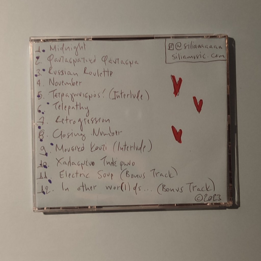 My sophomore album, “Φαντασματικό Φάντασμα”, has been reissued on CD (initial issue December 2023, so the CD in question is the 2025 reissue), and is available on my Bandcamp page! Comes with stunning additional artwork, a handwritten jacket, and an OBI strip. Starting at €8 + shipping.